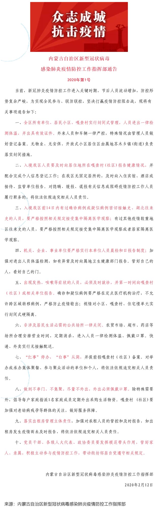 按照自治區(qū)疫情防控指揮部通告(2020年第1號)要求,現(xiàn)決定對兩級公司實(shí)行封閉式管理,具體要求通知如下: