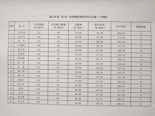 森工礦業公司(礦辦)2025年一季度全員績效考核公示