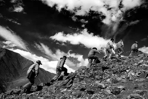 一個背包、一把地質錘、一個羅盤、一個放大鏡,地質人還沒來得及享受親情之樂、只顧追上那達達的馬蹄聲,背起行囊,奔赴遠方,只能到祖國的大江南北去訴說對于家人的思念。